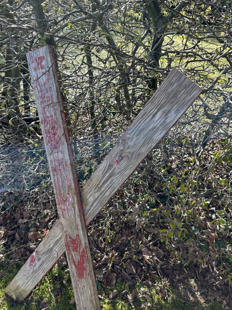 -Ein in die Jahre gekommenes X oder zwei Bretter (23×100 mm/Länge 1,20m)